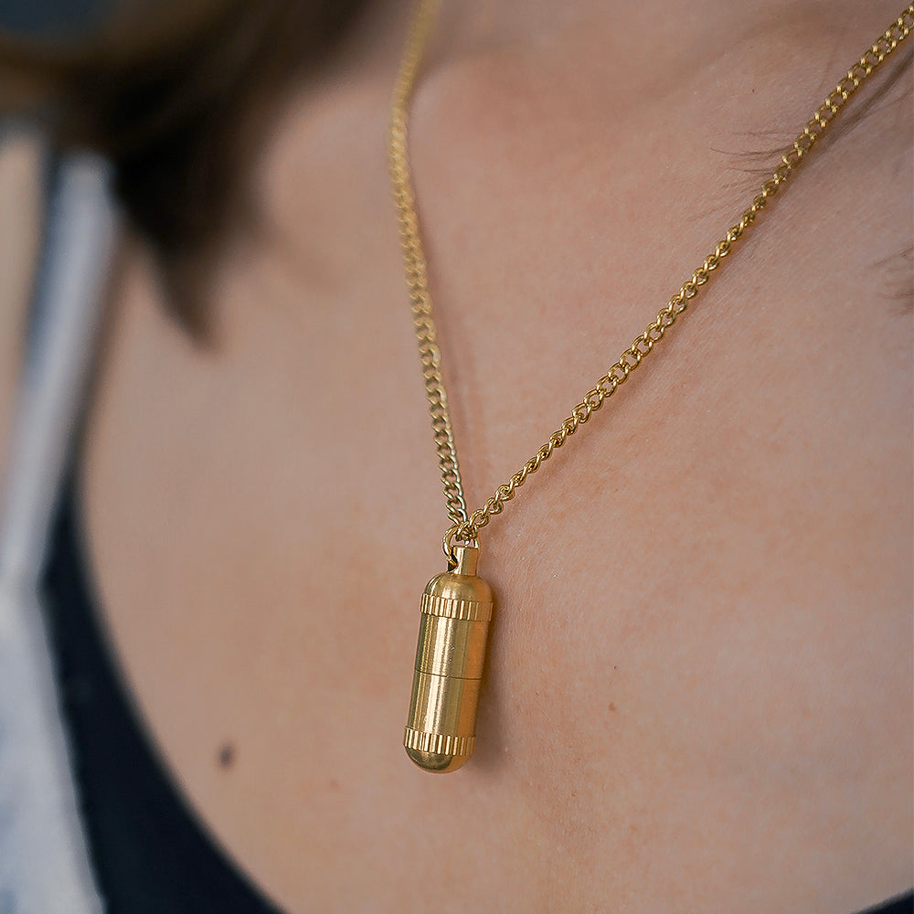 Χειροποίητο από ανοξείδωτο ατσάλι 316L με χρυσό φινίρισμα, το κολιέ σας Manifestation capsule είναι σχεδιασμένο για να διαρκεί μια ζωή.
