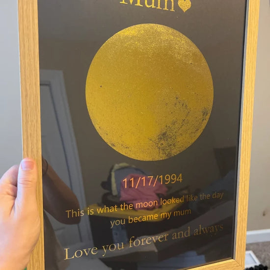 A "Hold Fázis" személyre szabott keret egy egyedi ajándék, amely megörökíti a holdfázis varázslatos pillanatát egy pontos dátumon, legyen az születés, születésnap vagy más különleges alkalom.